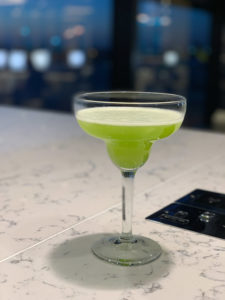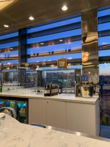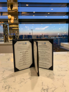 Σε οτι αφορά ποτά, εδώ η United σκοράρει εξαιρετικά. Στο χώρο υπάρχει ένα τεράστιο bar (με μαρμάρινο πάγκο), το οποίο αποτελεί -κατά την άποψή μου- το εντυπωσιακότερο στοιχείο του lounge. Εκεί μπορείς να πάρεις το ποτό σου επιλέγοντας από το σχετικό μενού. Μπορείς να επιλέξεις ανάμεσα σε περίπου 25 επιλογές κρασιών και άλλες τόσες κοκτέηλ, ενώ παράλληλα υπάρχει μπύρα draught και αναψυκτικά. Το μπαρ διαθέτει και καθίσματα στα οποία μπορείς να καθήσεις για να απολαύσεις εκεί το ποτό σου.